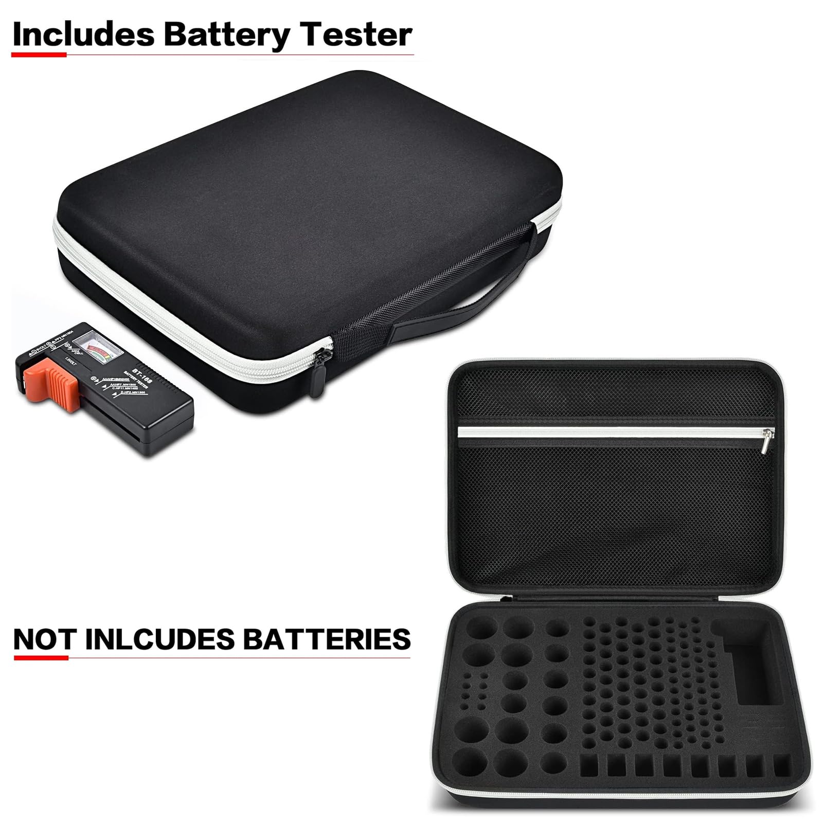 Battery holder case made of premium EVA materials which hard shell with shockproof, strong and water resistant material. Detachable insert foam with well cut holes fits different-sized batteries snugly, also can tightly fix all batteries in the groove. Makes your mess batteries regular and easy for you find the battery you need