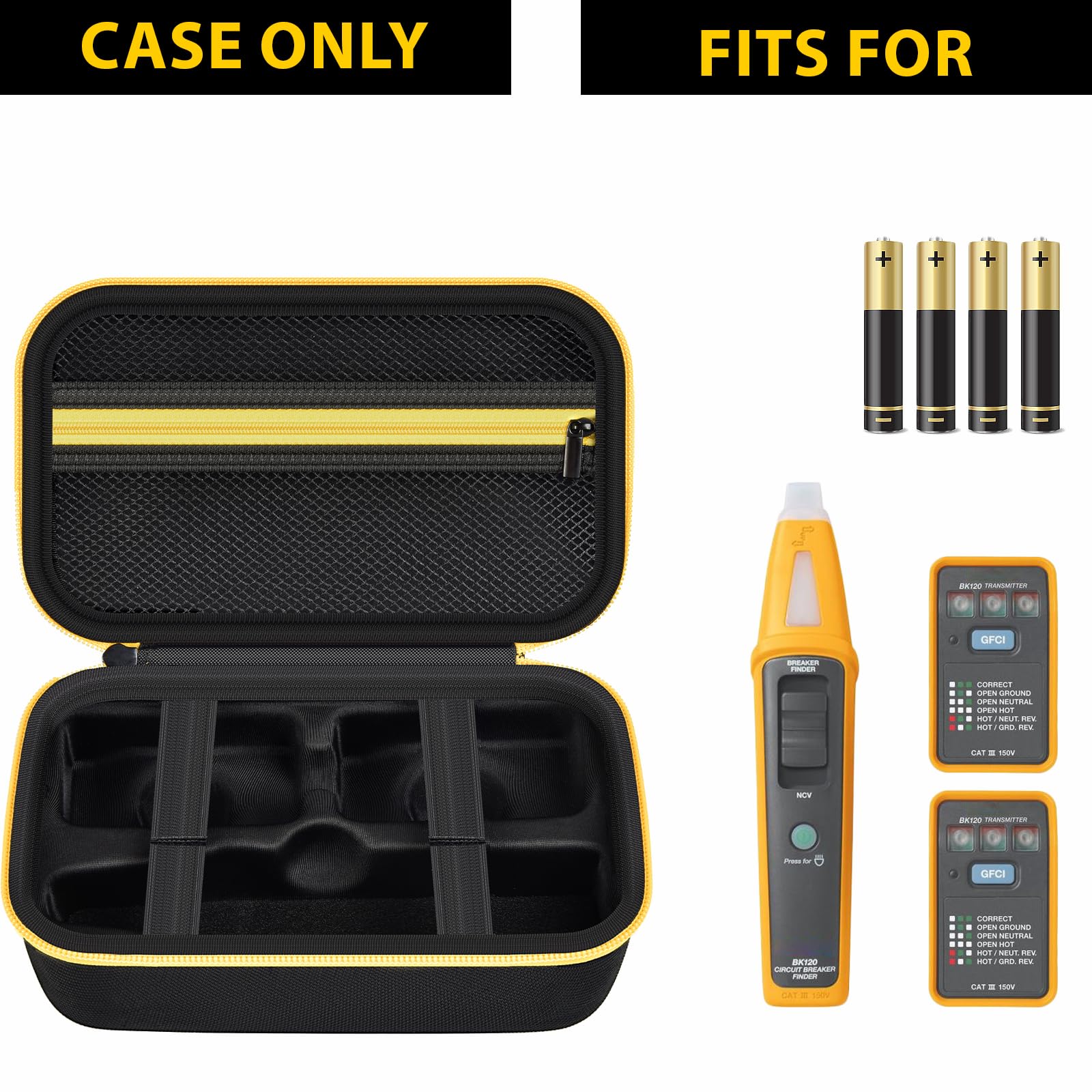 Circuit breaker finder case: Voltage tester design for Fluke BK120 smartTrace breaker finder for fluke ST120+ GFCI socket tester, circuit tracer tool bag providing dedicated slots to securely hold 1 breaker finder NCV detector and 2 socket testers. Ensures all your essential tools (circuit tracer + relay testers) are organized in one compact bag (case only)