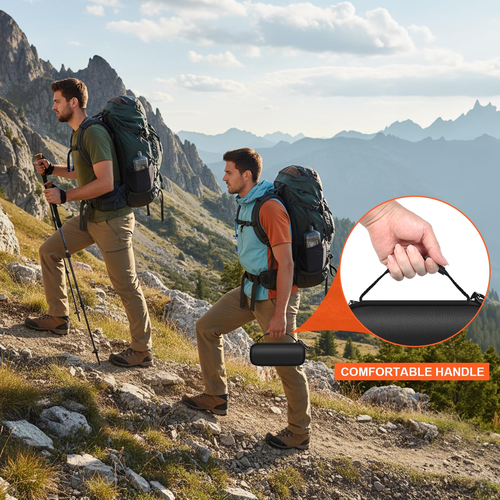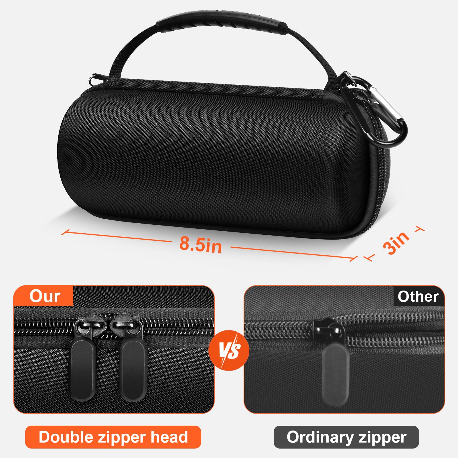 Bluetooth speakers storage organizer comes with an detachable adjustable lanyard, a carabiner, and a reinforced soft top handle.