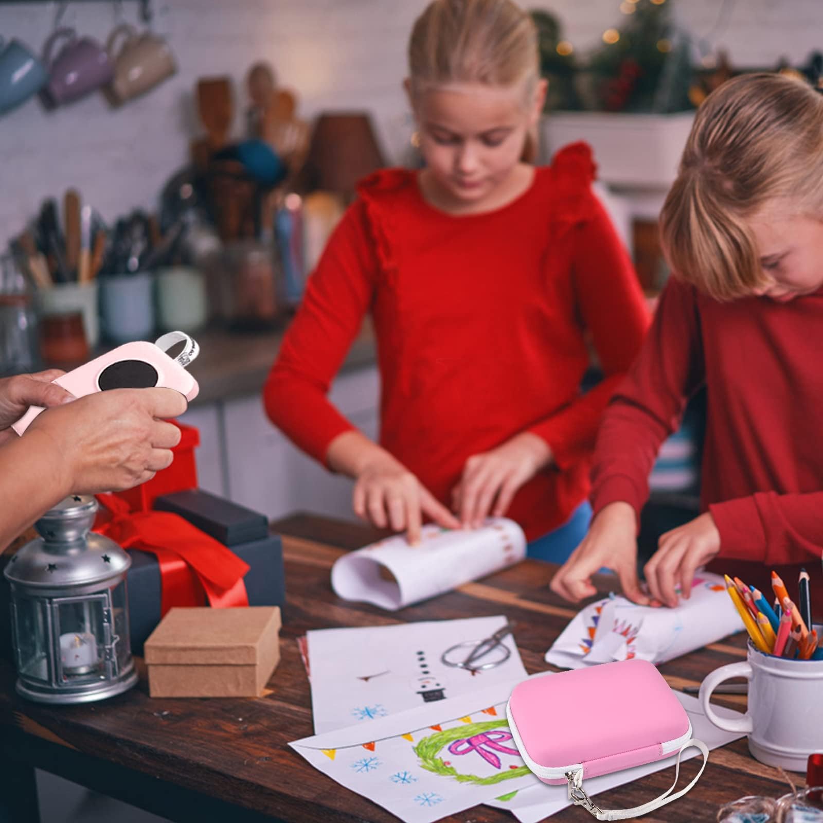 The compact size makes you put portable label printer case into backpack, suitcase and take label maker for organization to trips easily. You can also put it in drawer, on shelf and find it at once when you want to mark something. External size: 6.2*4.5*2inches.