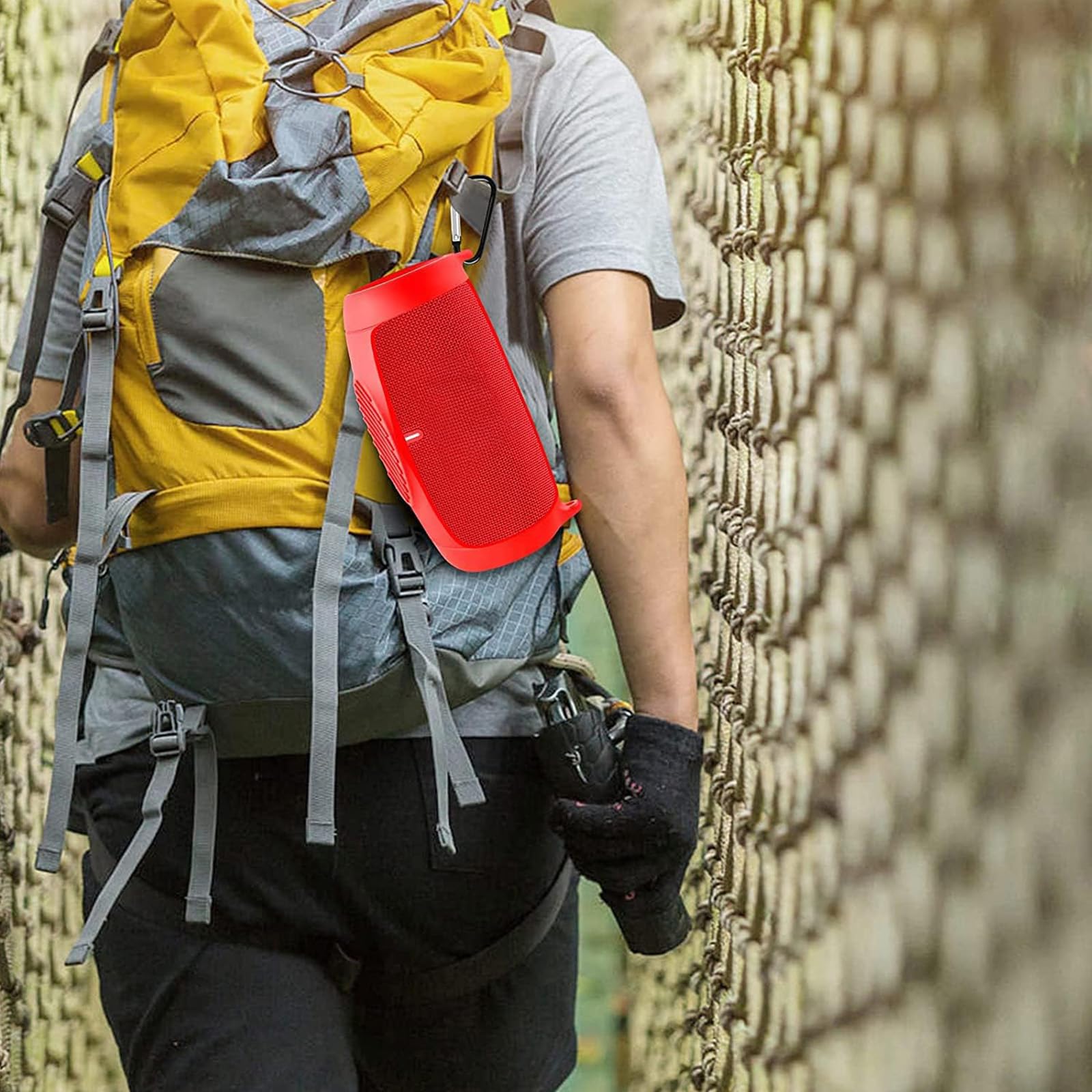 Soft Silicone Case Comes with Carabiner: Can buckle your speaker on the backpack, bike. Super convenient to carrying the speaker out when you traveling, Camping, Hiking.